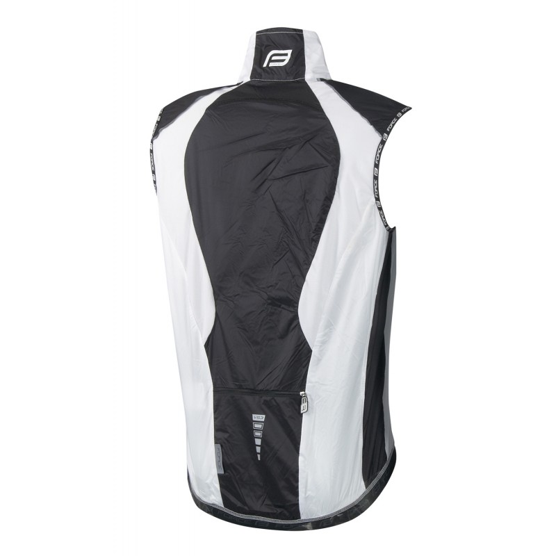 Colete desportivo preto e branco com logo F na gola