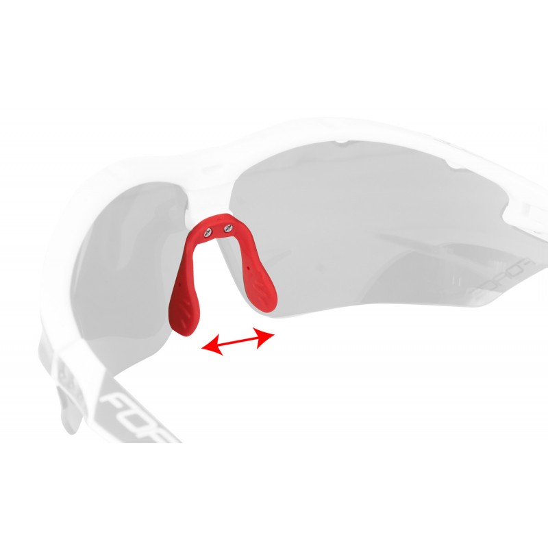 Óculos desportivos brancos com ponteira vermelha ajustável e lentes transparentes