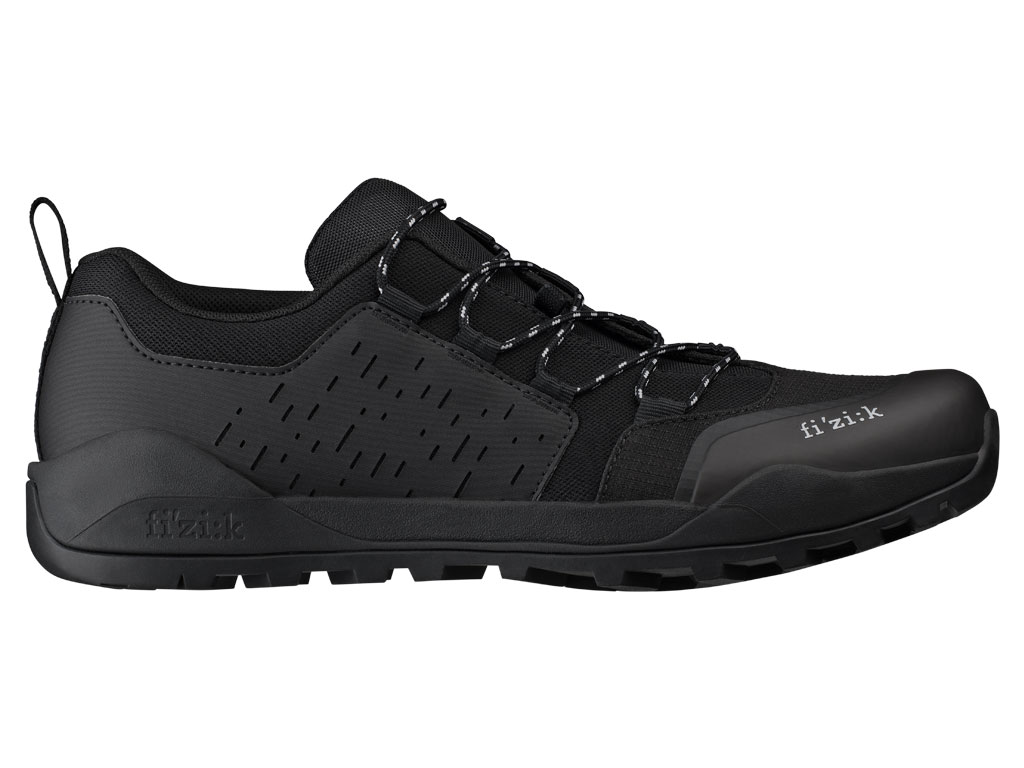 Parte superior: a parte superior oferece proteção contra os elementos: seu tecido de ripstop resistente que rasga e rasga. Uma biqueira laminada em PU e reforços laterais adicionam mais proteção e durabilidade. Projetamos a silhueta especificamente para reduzir o volume e evitar a aparência inchada de muitos sapatos de mountain bike.
