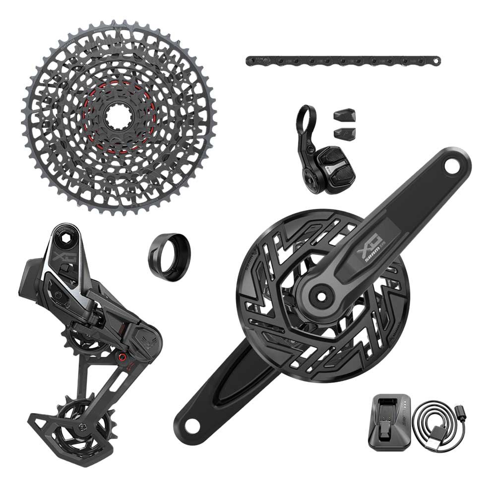Nossa resposta ao chamado para criar uma transmissão robusta e confiável para as suas necessidades de enduro, o grupo de transmissão X0 Eagle AXS E-Bike é a nossa transmissão de alto desempenho mais robusta. Nossas transmissões totalmente novas abordam de forma holística a mudança de uma bicicleta, um sistema inteiro sincronizado, proporcionando-lhe uma experiência de passeio superior. A mudança sob carga é possível na cassete X0 devido à combinação da tecnologia X-SYNC e ao mapeamento da cassete, criando mudanças perfeitas mesmo durante a sua maior potência de saída. O conjunto de manivelas X0 Transmission ISIS é compatível com os sistemas Bosch e Brose e apresenta o nosso conjunto de manivelas de alumínio mais avançado que a SRAM já fez, é absolutamente único e simplesmente impressionante. Oferecendo aos pilotos a performance legítima que o X0 representa graças ao seu design totalmente de alumínio com uma relação de rigidez-peso perfeitamente equilibrada. É também o conjunto de manivelas de alumínio mais leve do mercado. A corrente de transmissão X0 Flattop apresenta um acabamento Dark Polar específico do X0, foi revestida com níquel por eletrodeposição e vem com um revestimento PVD para uma incrível resistência à corrosão e desgaste. Totalmente aprovado para uso de E-MTB com pinos sólidos. Com um design de dois botões clique e dispare, O controlador AXS Pod Ultimate transforma a ação crucial de entrada do piloto numa experiência enormemente mais pessoal para todos os seus controles AXS.